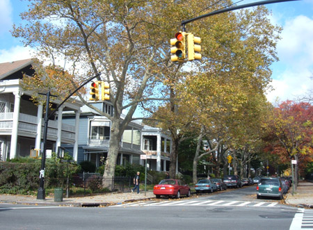 Cortelyou road which runs east-west is where all the shops, stores and eating joints are located as also the subway station. It’s the hub of all activity essentially. The roads running north-south are all residential and Argyle – where I live – is one such road. That’s my building from the outside and what the rest of the street looks like. We’re well into Fall as you can see..