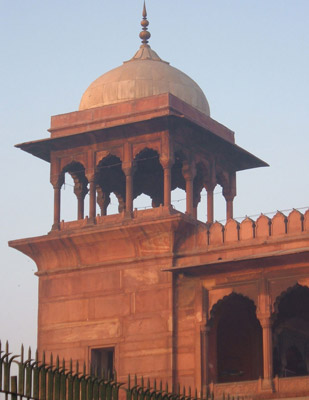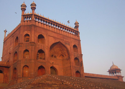 Steps made of red sandstone lead up to the 3 entrances and this gives the mosque a commanding elevation over its surroundings – even today!