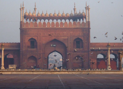 So there it was in all its morning glory as Mohan and I made our way by cycle rickshaw from Chawri Bazaar’s metro station to the Masjid. ‘Masjid-i-Jahan Numa’ or ‘mosque commanding a view of the world’ is the actual name for this Masjid and it was built during the tenure of Shah Jahan in 1656 AD. Rumoured to hold up to 25,000 worshippers in its courtyard, it is without doubt the largest and best known Mosque in the country.