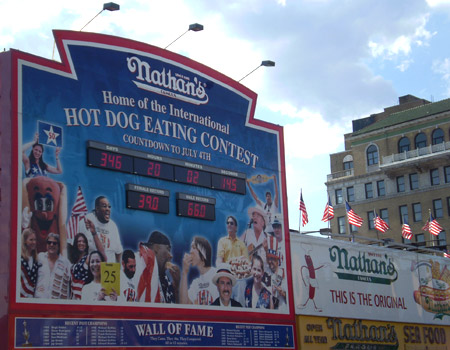 While I didn’t quite match up to the high standards of those contestants, I braved the 20 minute long queue to be served an outstanding (if you could call a Hot Dog that) Frank on a roll topped with Sour Kraut Relish and washed it all down with some home style Lemonade. My server had a distinctly East European accent and the contest itself has been won 6 consecutive times by a young Japanese man. That’s New York for you!!