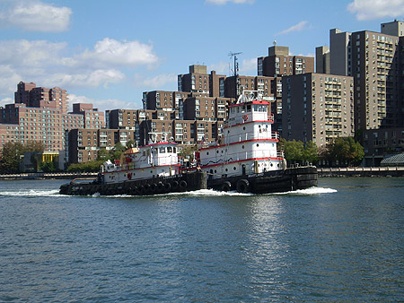 While the apartment buildings in Roosevelt Island would fail to impress most people from an architectural standpoint, the water channel between the two islands provides for some interesting activity ranging from Kayaks to Speed Boats to Luxury Yachts to the odd Tug or two. At times, the lack of contrast can be striking!