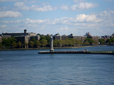 The old lighthouse at its northern most tip signals the end of Roosevelt Island and almost immediately, the less imposing skyline of Astoria, Queens comes into view.