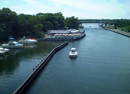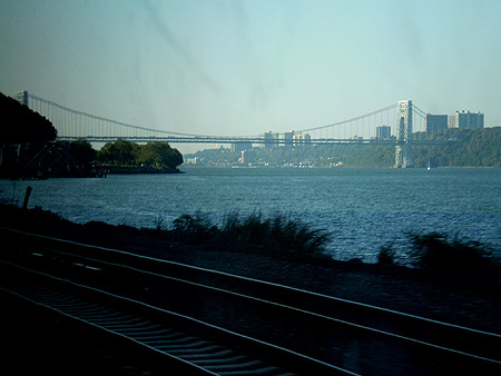 The bridge you see in the distance is of the ‘swing’ type and carries the Amtrak line to upstate NY – sharing the ‘right of way’ with Metro North trains till Poughkeepsie. Soon after joining up with the Amtrak line, looking back (or south) one can easily see the very impressive George Washington Bridge which connects upper Manhattan to New Jersey.