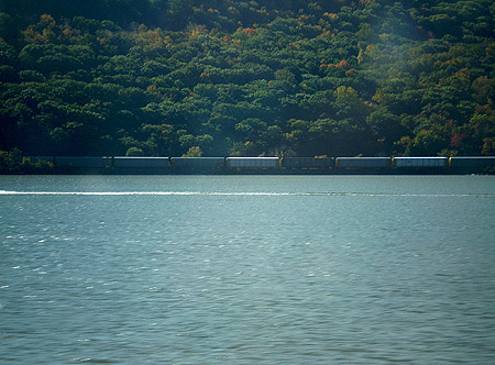 In one of my earlier blog posts, ‘Bear Essentials‘, I had written about an outing to Bear Mountain. We were now close to that very spot, except, on the other side of the river. As if on cue, a freight train showed up on the opposite bank and at that distance, looked nothing more than a model train!