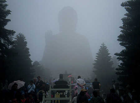 On the day I arrived, it was overcast and hazy. Day 2 and I awoke to thick fog and for a moment, I thought I was back in Delhi. It was forecast to rain as well and by the time we boarded the Cable Car to Ngong Ping, I gave up all hopes of a scenic ride.