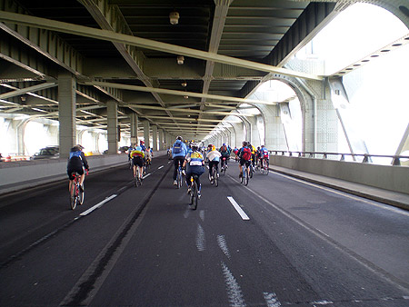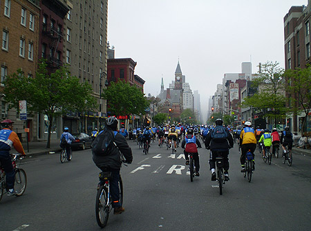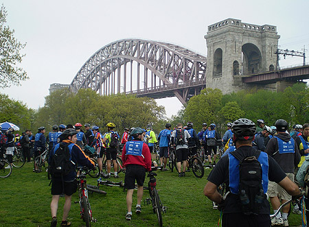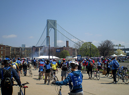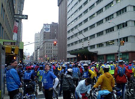 4 hours and 45 minutes earlier: The northwest corner of Duane St and Church St in Manhattan – I wait for the flag off along with 29,999 other cyclists. We are four blocks away from the starting line and the mass of bikers behind me stretches for another 15 blocks south. I don’t feel so bad any more for having awoken a little past 5 that morning!