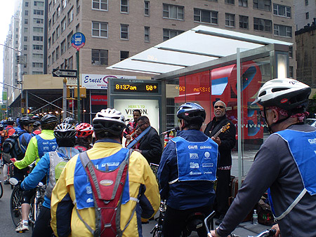 With so many thousand cyclists riding together, bunching is inevitable in the initial stages and we faced our first such bottleneck near the entry to Central Park. But a live Jazz band performing for us at a bus shelter more than made up for the wait!