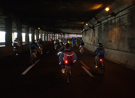 The southbound lanes of the FDR Drive had been closed to traffic and this was the first of two major highways that were shut down for the tour that day. It was a surreal feeling, having one side of the highway all to ourselves, with regular traffic passing on the opposite side.