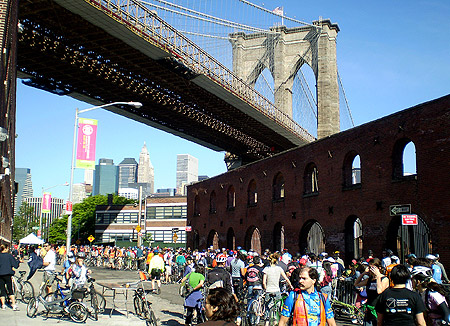 On the 22nd of May 2008, the city of New York, amidst much fanfare, fireworks and a Navy fly past, celebrated the 125th Birthday of Brooklyn Bridge. To coincide with the event, the 4th annual Tour De Brooklyn was moved ahead by a few weeks. And befitting such an occasion was the location chosen for the flag off – on Water St right under the glorious bridge itself!