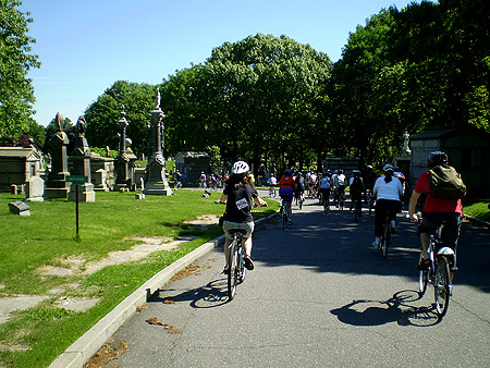 At 18 miles, the length of the tour has been kept constant each year but the route itself keeps changing. And this year was no different. While we were disappointed not being able to ride through Prospect Park, we were in for a bit of a treat ahead. After leaving behind Crown Heights and passing through the somewhat rough neighbourhoods of East New York & Broadway Junction, we turned into the Cemetery of the Evergreens.
