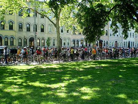 Some 18 miles and 3 hours later, the tour ended in Cadman Plaza Park, right by the Brooklyn Bridge. While we topped up our water bottles, the bikes took in some much needed shade and relaxation.