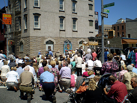 A group of people in a seemingly informal assembly (there was no police presence to suggest otherwise) knelt down to offer their respect while men in uniform stood closer to the scene of action – a makeshift temple of sorts – where men dressed in a religious attire went about their business. To the passer-by, it was all very confusing of course but reason enough to slow down, if not stop. Some suggested it was a Polish ceremony of some kind (there is a large Polish populace in those parts), others thought it was a ceremony honouring sailors (Fleet Week was on at the time) but no one really knew exactly what it was.