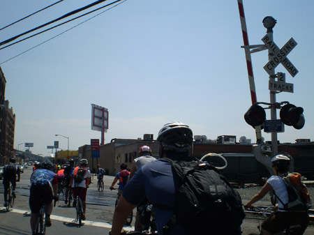 On to the more industrial neighbourhood of Hunters Point (separated from Brooklyn by the Newtown Creek), where we headed east along Borden Ave crossing the Long Island Rail Road (LIRR) tracks just past the Pulaski Bridge. My first ever rail crossing on a bike π