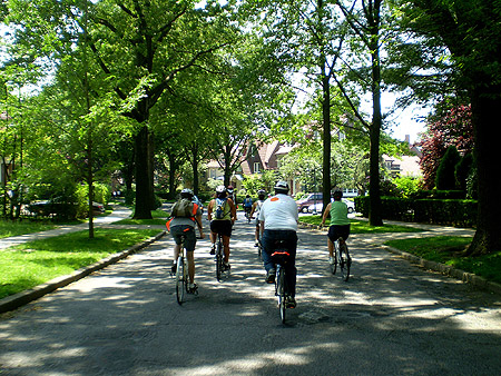 You could be forgiven for believing we were riding through a state park but Forest Hills Gardens is true to its name. All along our route there were thoughtful little signs posted, informing us which neighbourhood we were passing through and a little trivia about each. Here, in Forest Hills Gardens there was one sign that said it best, “Yes, you’re still in Queens!”