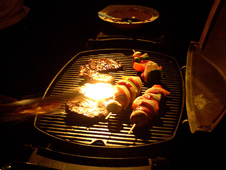 While preparing for our feast, we realised soon enough, that the light illuminating the backyard had blown! Our hosts very graciously offered candles and torches in lieu of the same. So here we were, setting up our BBQ under candle light – deep in a jungle somewhere in the Catskills, darkness closing in, the mercury steadily dipping and the sound(s) of nocturnal beings for company! Couldn’t possibly have asked for anything more exciting than that!