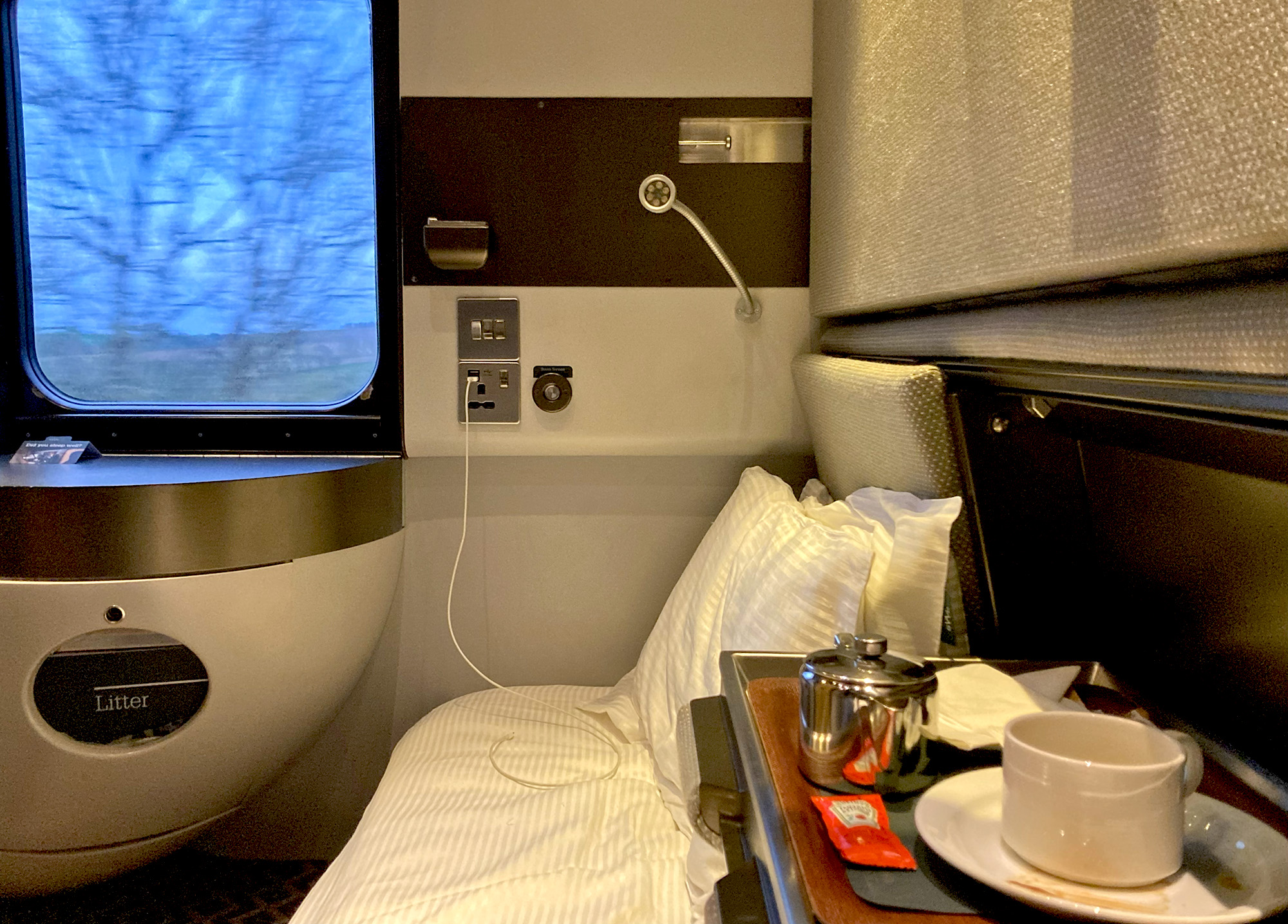 The refurbished Mark III carriages on the Night Riviera offer an exceptionally smooth and quiet ride. Impressive, given their age. But sadly, that doesn’t quite translate to a good night’s rest for me. And the culprit for that is, undoubtedly, the unusually narrow lower berth. In hindsight, I would’ve done a lot better using the noticeably wider upper berth. You’re welcome, future travelers on the Night Riviera!