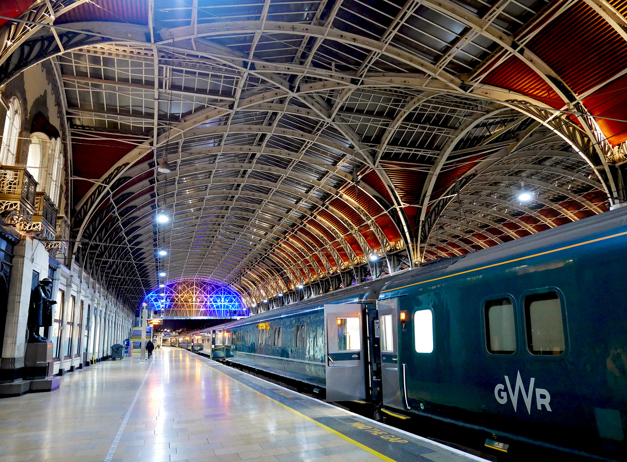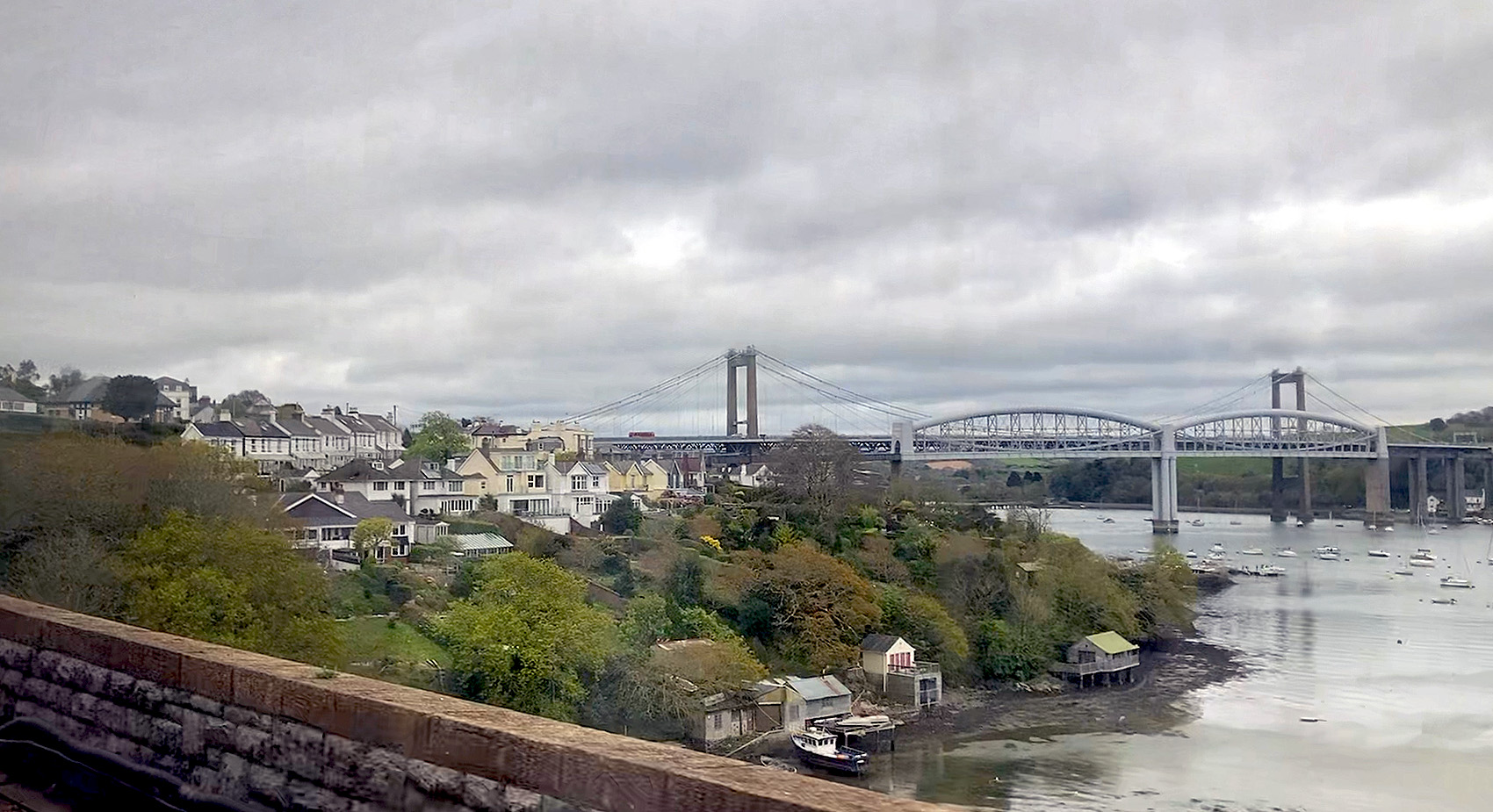 The River Tamar accounts for much of the county line between Cornwall and Devon in southwest England. For the railways, that water body was surmounted in 1859 by another Brunel masterpiece, the Royal Albert Bridge. On my daytime journey back to London, that crossing is in fact one of the main highlights. As is a rather close connection at Plymouth; the express departure kept waiting there, thankfully, for our late incoming local from Penzance. And with its glorious sea wall at Dawlish, which the railway practically hugs, Devon doesn’t disappoint either.