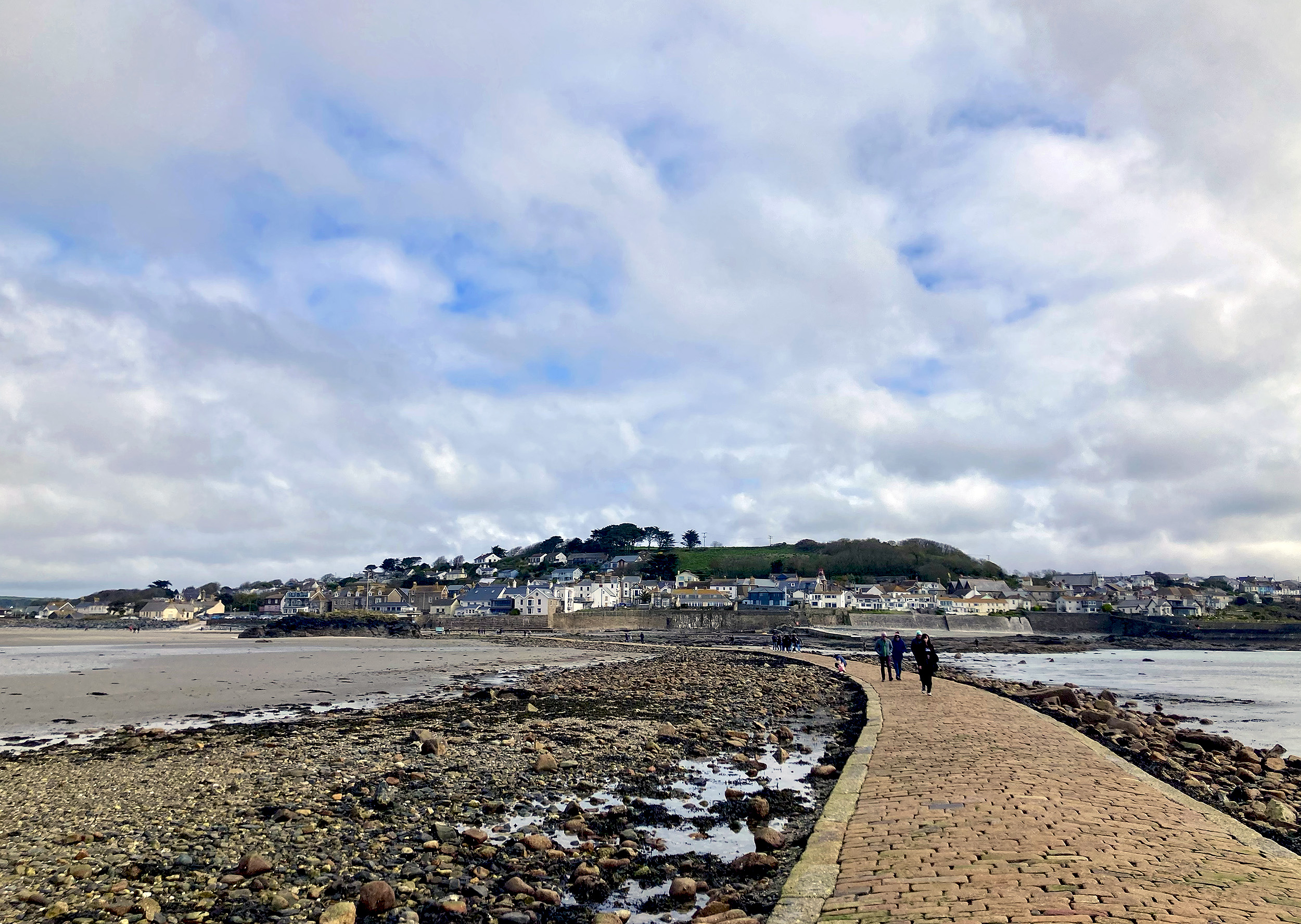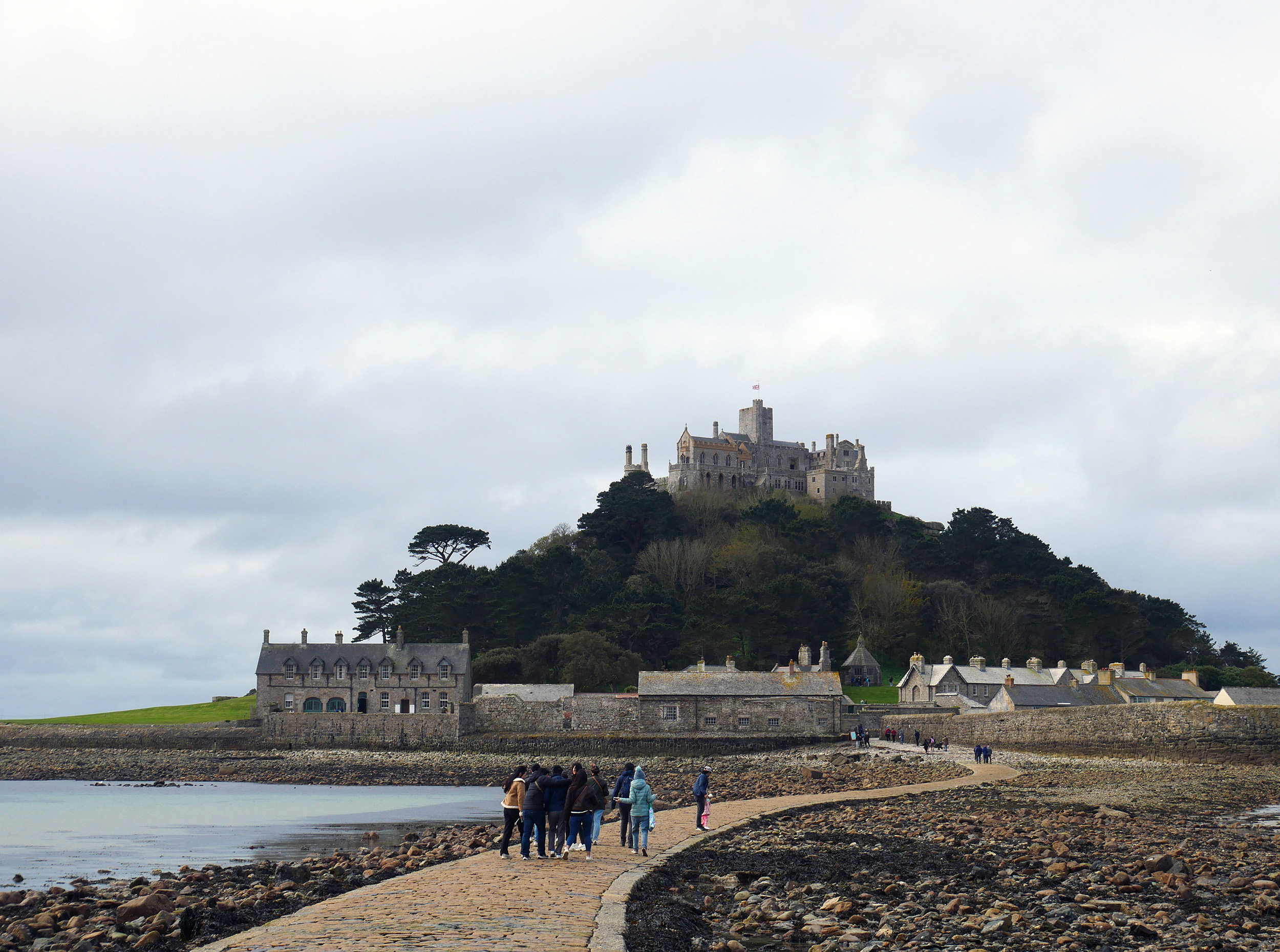 On the eastern edge of Penzance lies the coastal village of Marazion, and Oliver sets me down by a pathway leading to its namesake beach. From there, it’s a half-mile walk along the causeway to the tidal island of St Michael’s Mount, England’s answer to Mont-Saint-Michel in France. I’m not quite sure when I’ll make it to the Normandy coast, but for now, St Michael’s Mount, with its medieval castle perched high on a hill and hemmed in by water, is a sight to behold. Walking towards it along that ancient stone causeway – an activity that’s entirely dependent on the tides, and as a result, only available for a very short window of time each day – is a thrill in its own right.