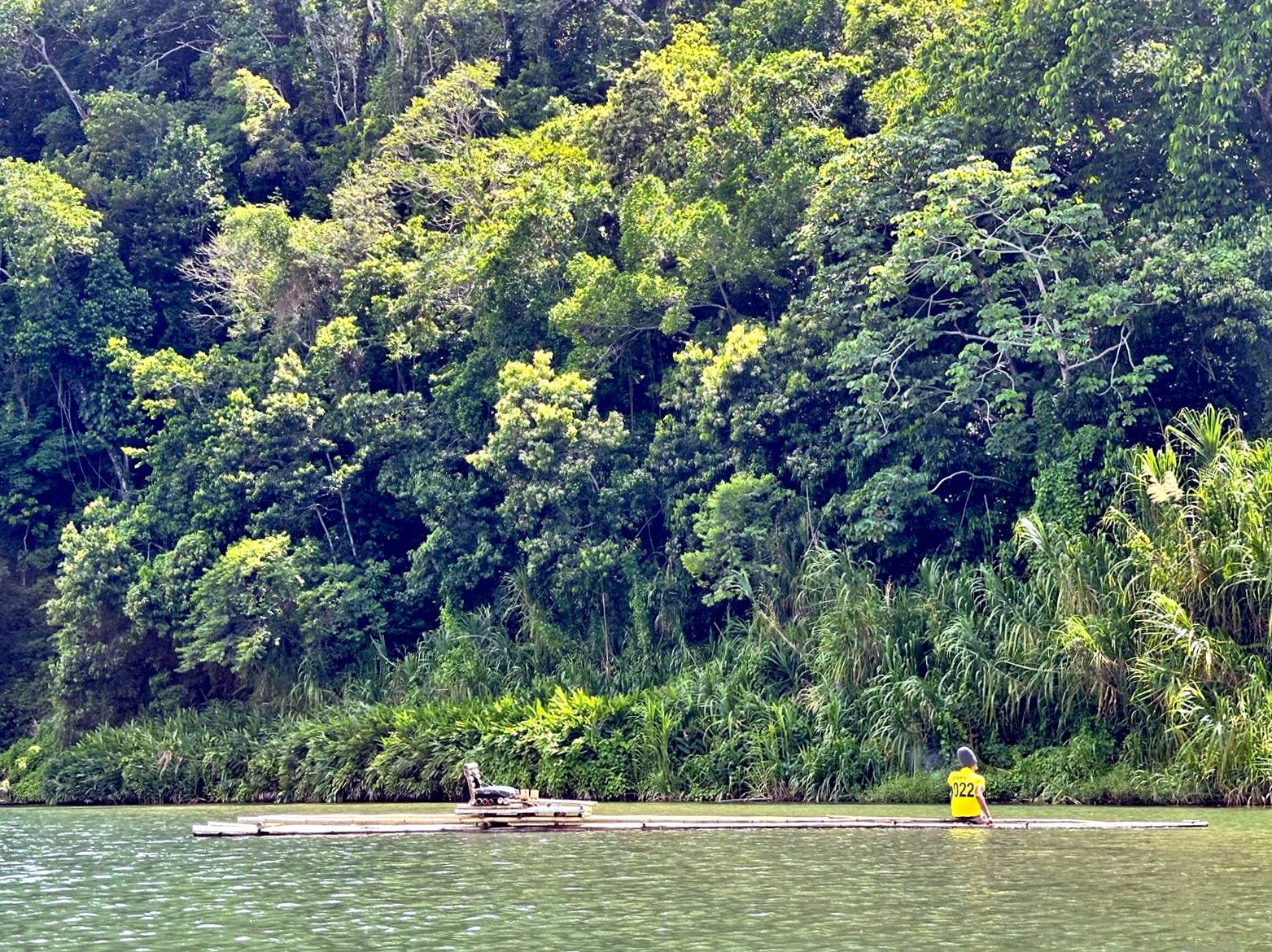 Our main outing for the day involves a trip along the Rio Grande on bamboo rafts. We pull up at Rafters Rest, about 10-miles west of Port Antonio, and seek out Roy and Rohan amongst the many “captains” milling around. Within minutes, we set sail upstream, passing a half dozen or so returning rafters. From that point on, the river is practically ours to savor, and Roy breaks into Harry Belafonte.