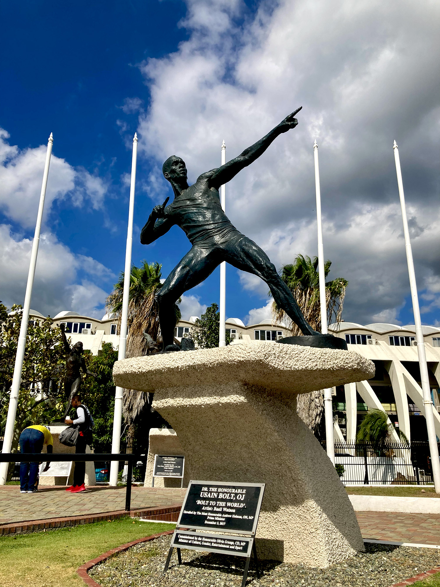 In ’66, a few years after it gained independence, Jamaica hosted the Commonwealth Games. Toward that endeavor, it built a sprawling multi-sport complex located within the aptly-named Independence Park. Occupying pride of place in front of the central venue, the Jamaica National Stadium, are a row of statues honoring the country’s track athletes, including the mighty Usain St. Leo Bolt. The holy grail of athleticism, if you will, it’s well worthy of the detour to pay homage to these giants of the sport.