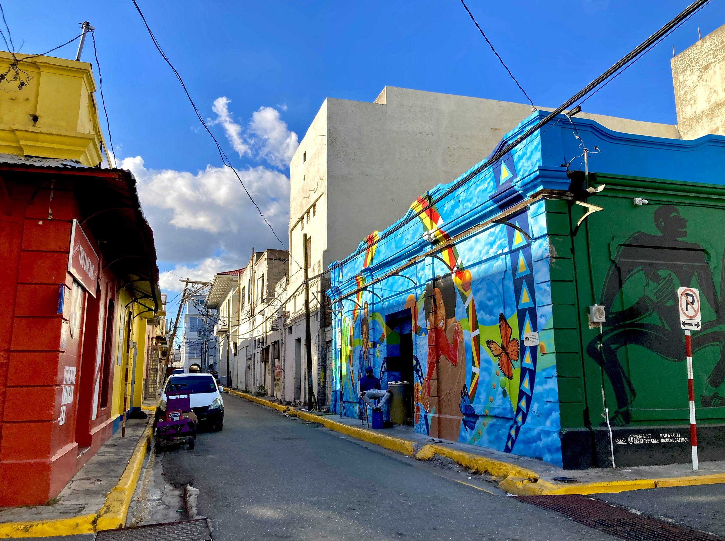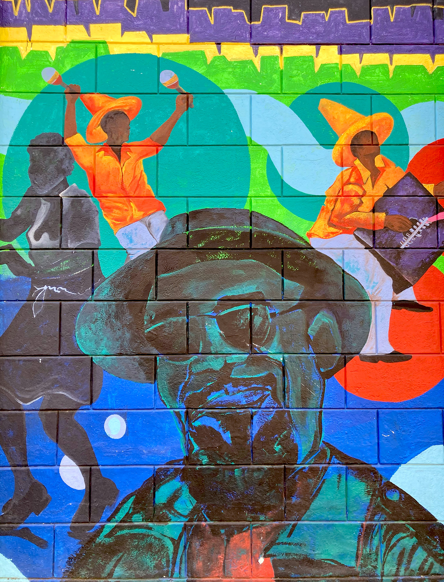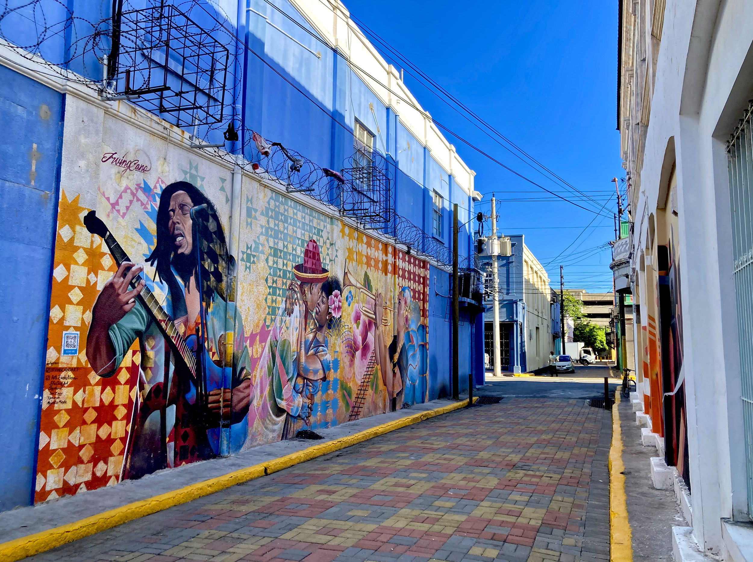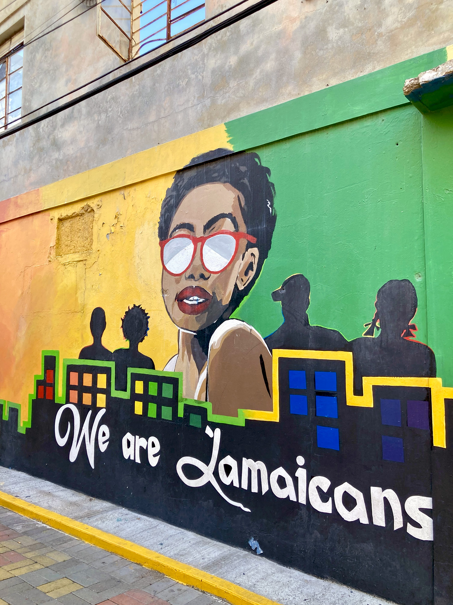 Relative to some of the neighborhoods in central Kingston, the city’s historic center appears rather neglected and fairly desolate, despite its location close to the water, and its solid repository of colonial-era buildings. There have been efforts in recent years to revive parts of it though, and this has led to a vibrant eight-block stretch centered along Water Lane, full of street art and wall murals. The art here is bold, colorful, to say the least, and runs the gamut as far as themes go. It’s late afternoon by the time I show up, and with the sun well into its westward trajectory, the rich palette here is beginning to pop almost as much as the Caribbean sky.