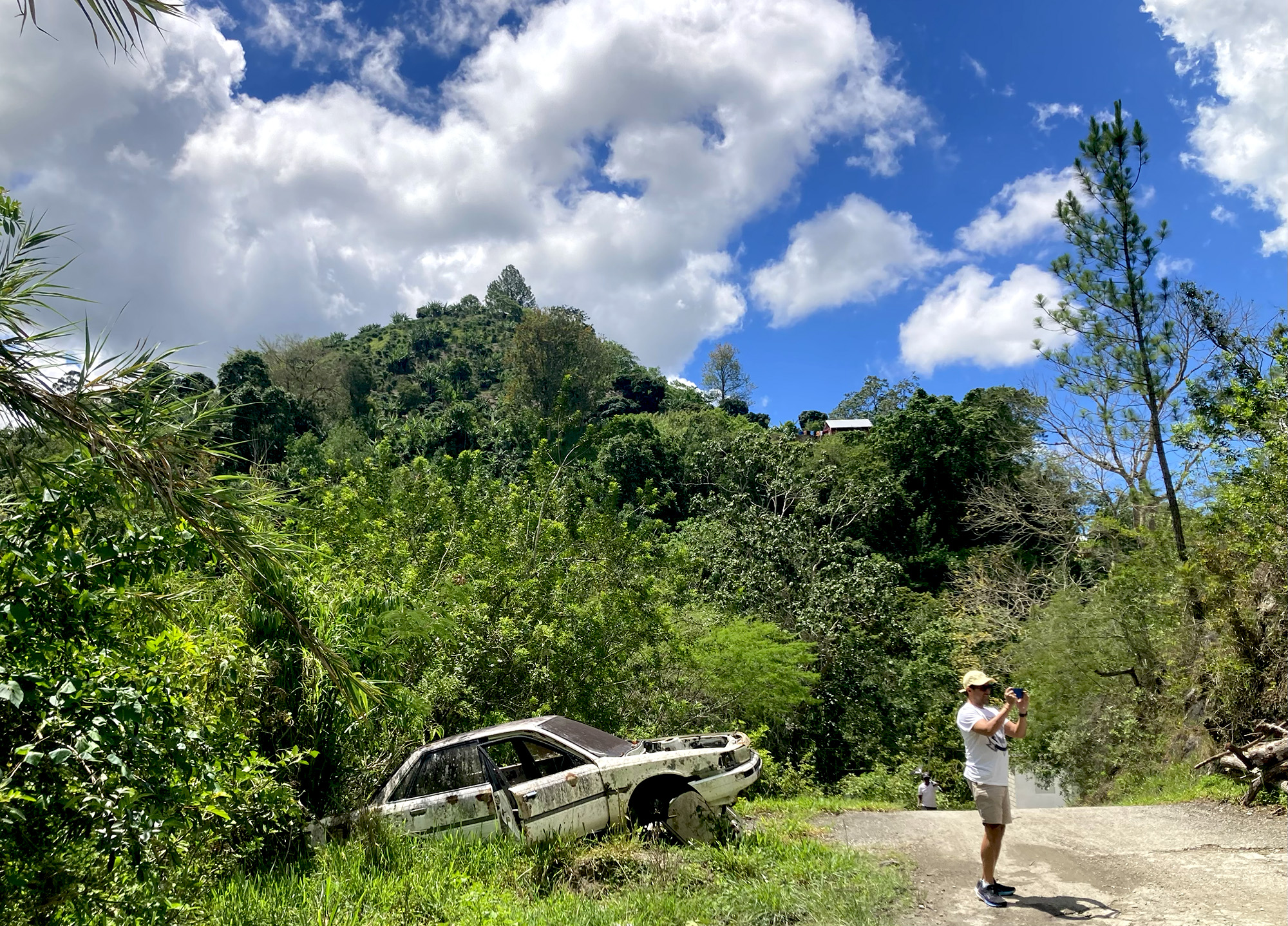 But that isn’t the last wrong turn we’ve taken for the morning. The next route Google puts us on is less steep, to be sure, but barely has a surface to speak of. Carcasses of abandoned vehicles – long having succumbed to mother nature – dot the route, and we get stuck in what could only be described as a crevasse, not once but twice. Despite the unpleasantness and anxiety of it all, it’s a lesson in perseverance for us, and an opportunity to recognize the human spirit – ours to some extent, but really that of the locals, who’ve gone above and beyond to help us; greeting us with the customary, awright (are you ok?), and ushering us along with words that couldn’t be wiser, “take your time on the road”.