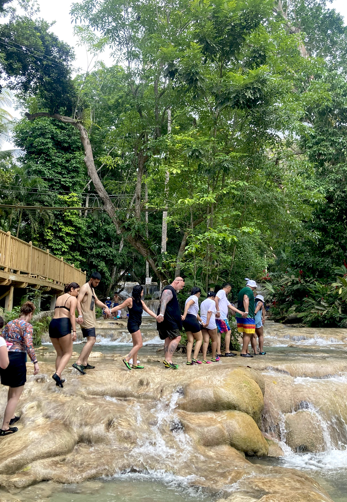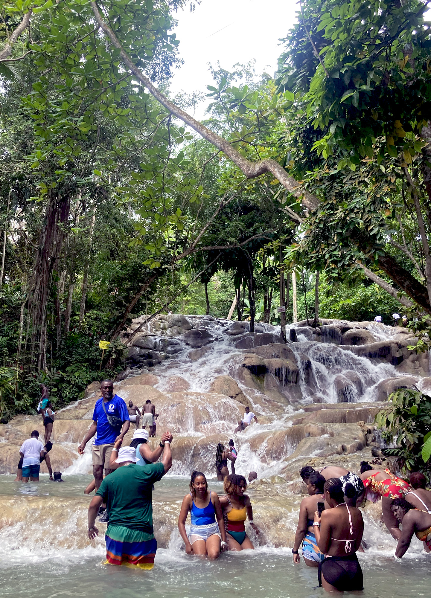 Ocho Rios is our next and final destination. Located about a two-hour drive west of Port Antonio, it’s one of the largest towns on the north coast of Jamaica, and quite the tourist hub. Its main draw is undoubtedly Dunn’s River Falls. Almost 600-feet in length, the waterfalls are naturally terraced like giant stairs, and climbing them is one of the most sought after activities for locals and visitors alike. Almost 200-feet high and fed by spring water at their source, the falls empty into the Caribbean Sea. You could choose to go it alone but a guide is highly recommended. Expert guidance, along with special “water shoes” – which you pay for but get to keep – and that all-essential “human chain” is what gets you up eventually. It’s far from easy, and from a safety perspective, let’s just say it wouldn’t pass muster in the first world. Is it worth the effort and risk then? A hundred percent.