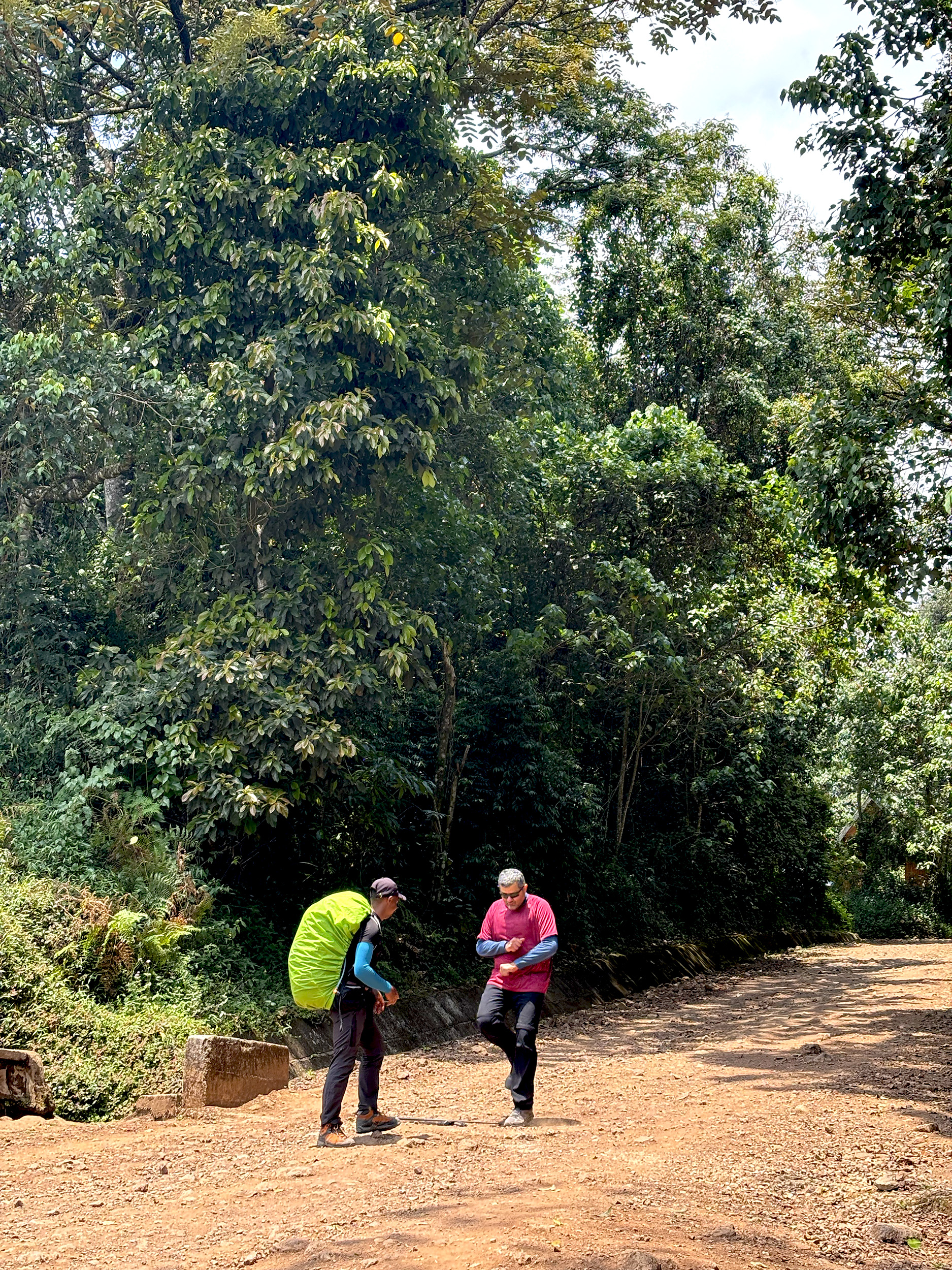 Two thirds of our route still remains below Mweka Camp, but with red-clay soil for terrain, and a generous green cover above, the last few hours are going to be easy on the knees, as well as the eyes. Making good time now, we stop occasionally to marvel at the hollowed out trunks of East African Camphorwood trees, or the aptly-named “old man’s beard”, a shrub-like lichen that hangs off them. Clouds roll through the Rainforest making for a truly sublime experience, with an earthy dampness that’s a joy to the senses.