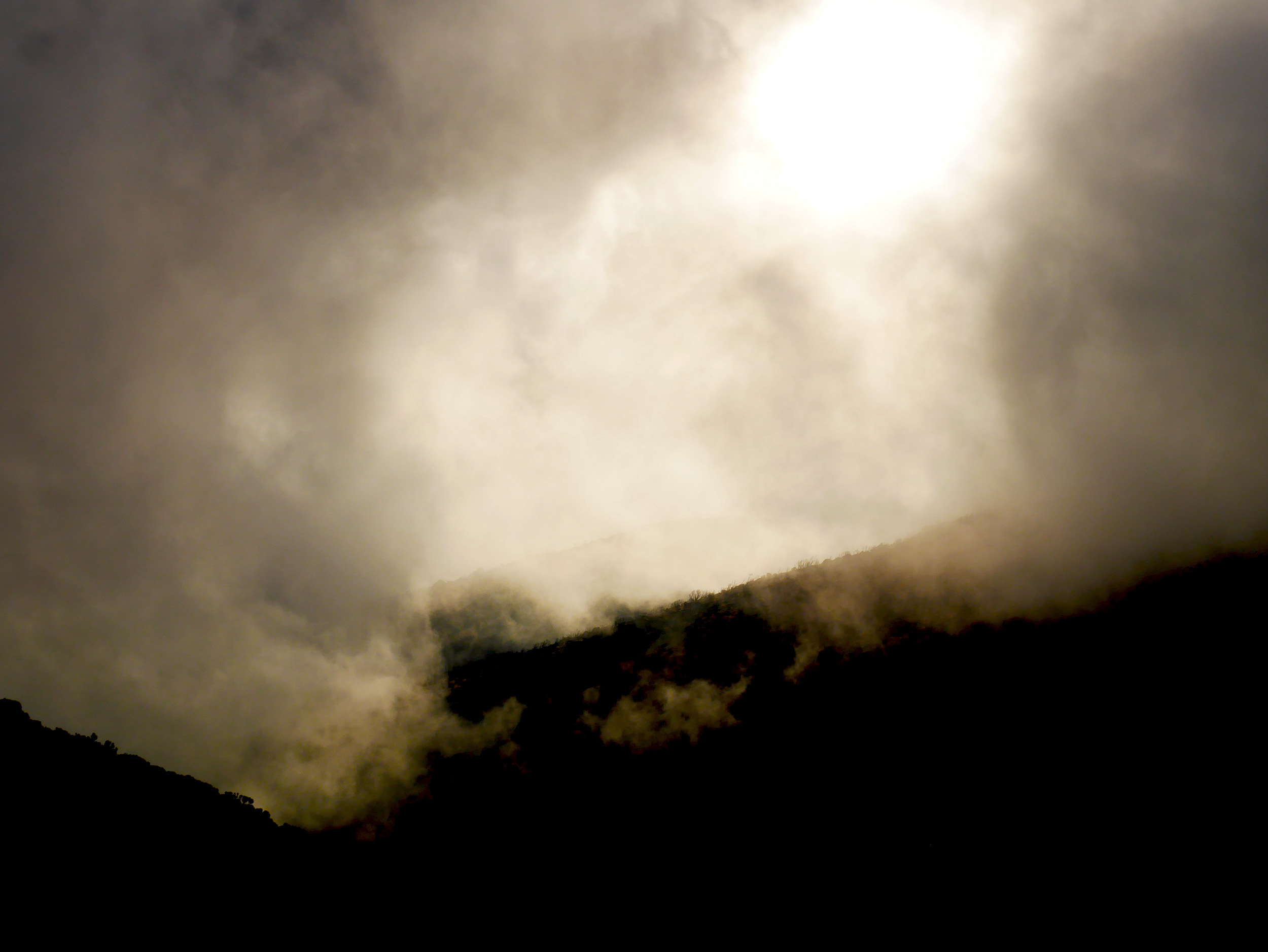 The clouds move in as we get closer to camp, and a definitive chill sets in. Layers that were removed not long after we began climbing, are hurriedly put back on. Conditions are fairly miserable as we approach Shira Cave Camp (12,300 ft / 3750 m), with a thick fog, stiff wind and persistent rain, making for some very damp cold. But there’s also ginger tea awaiting us in the mess tent, which US and SC have got a head start on. SC, in fact, is already done with this whole cold thing, reminding us time and again that he’s from the desert. At dinner, zucchini soup is accompanied by heated debates on bowel movement, but the discussion thankfully abates as the main course arrives. Grilled pork and pilau, along with our perennial favorite, kachumbari. The inclusion of pork courtesy of SC having tinkered with the menu previously. A fact we chided him for, but our secretly grateful about.