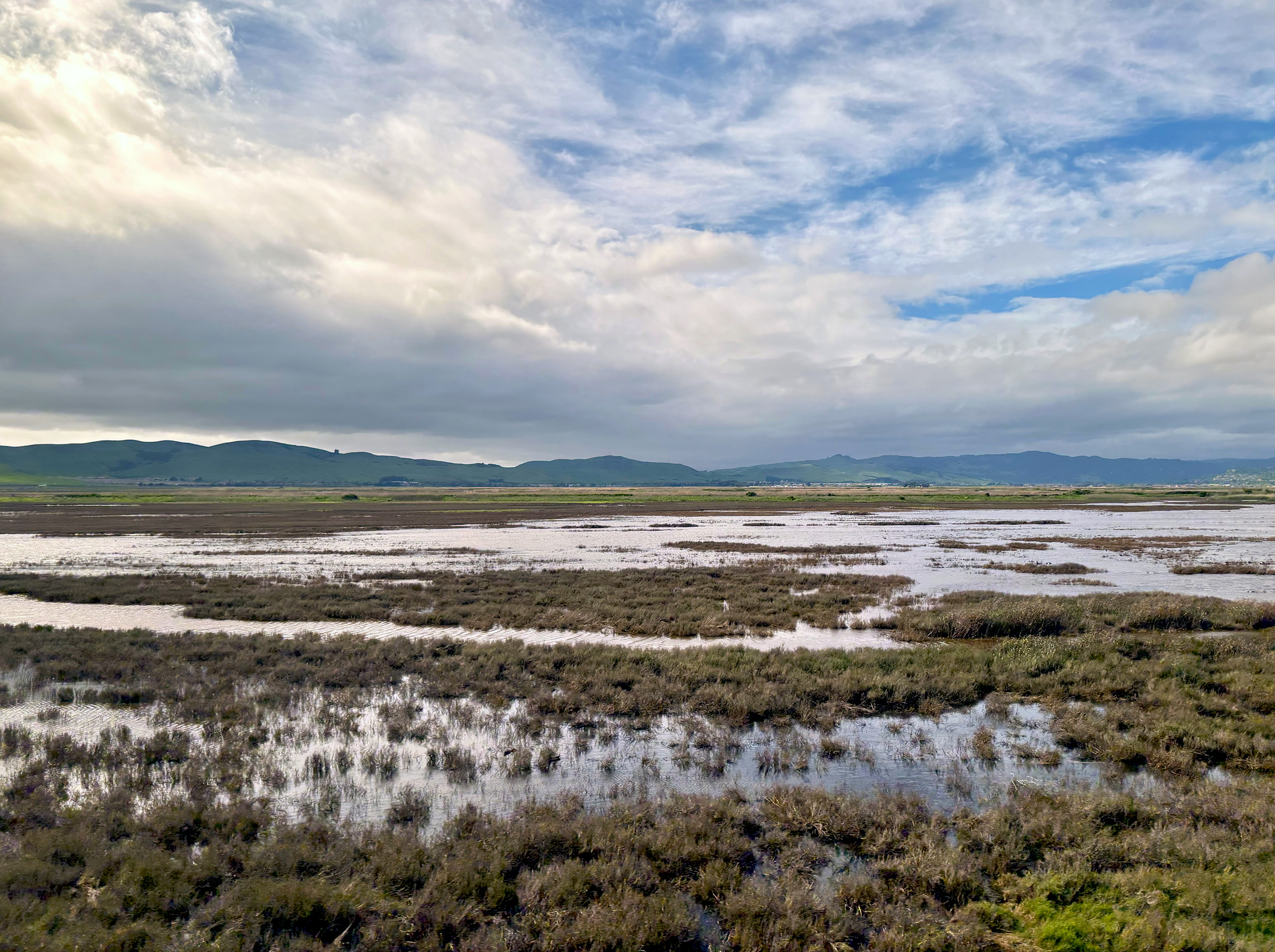 Having descended quite a bit, and well clear of the snow line by now, we get a glimpse of Interstate 80 once more, crossing over it by means of the historic Long Ravine Trestle. It’s the very bridge the four of us had photographed the Big Boy on, during our pursuit of it in July last year. It’s lunch time now so we’re back in the Dining Car, and in a turn of fortunes, we get to pick where we’d like to sit! It’s our final meal on the Zephyr, so we ask for an extra helping of their butter cake, an off-menu item that SB is well versed with. Colfax, our next stop, lies in the foothills of the Sierra Nevada and is the first real habitat of note since leaving Truckee. We pull in early to Sacramento, the Capital of California, and the last of the smoke stops on the Zephyr’s westbound run. For me, it’s familiar territory from here on, having done the route west of Sacramento, on the Coast Starlight a few years ago. Only this time, California’s Central Valley – looking absolutely lush – is barely recognizable, and further west, at our station stop of Martinez, spring has certainly sprung! Did we just go through three distinct seasons?