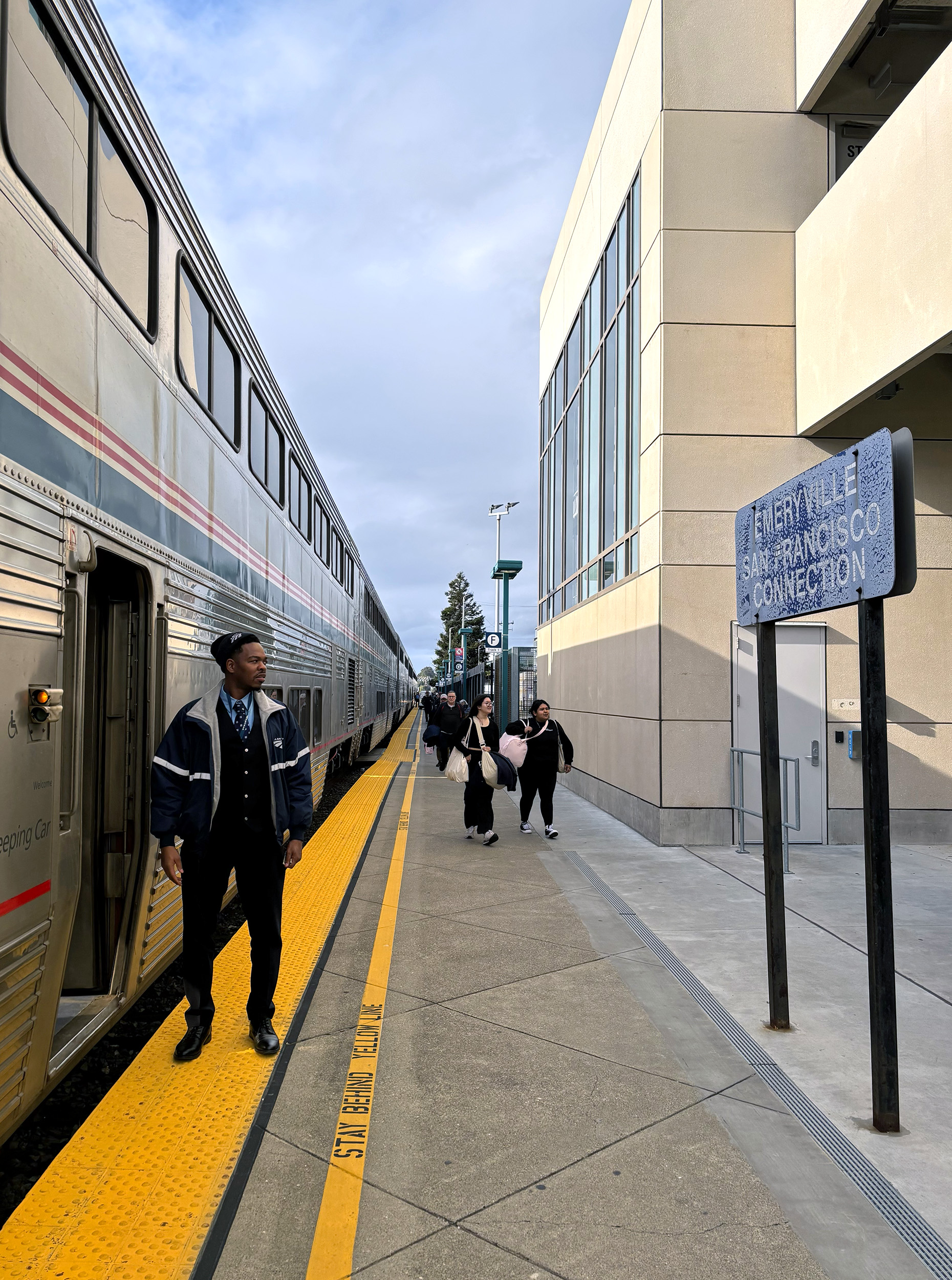 Past Martinez, the route of the Zephyr hugs San Pablo Bay all the way to Richmond, making for a truly scenic last stretch of the journey. Arrival at Emeryville is a full six-minutes early, mighty impressive given the sheer distance our train has covered, and Amtrak’s rather dismal reputation at timekeeping. Emeryville Station, while perfectly utilitarian, is as far a cry from Denver’s Union Station as one can possibly imagine. It’s the underwhelming end to an otherwise spectacular journey. A train ride with few parallels in North America, the four of us finally agree. The jewel in Amtrak’s crown.