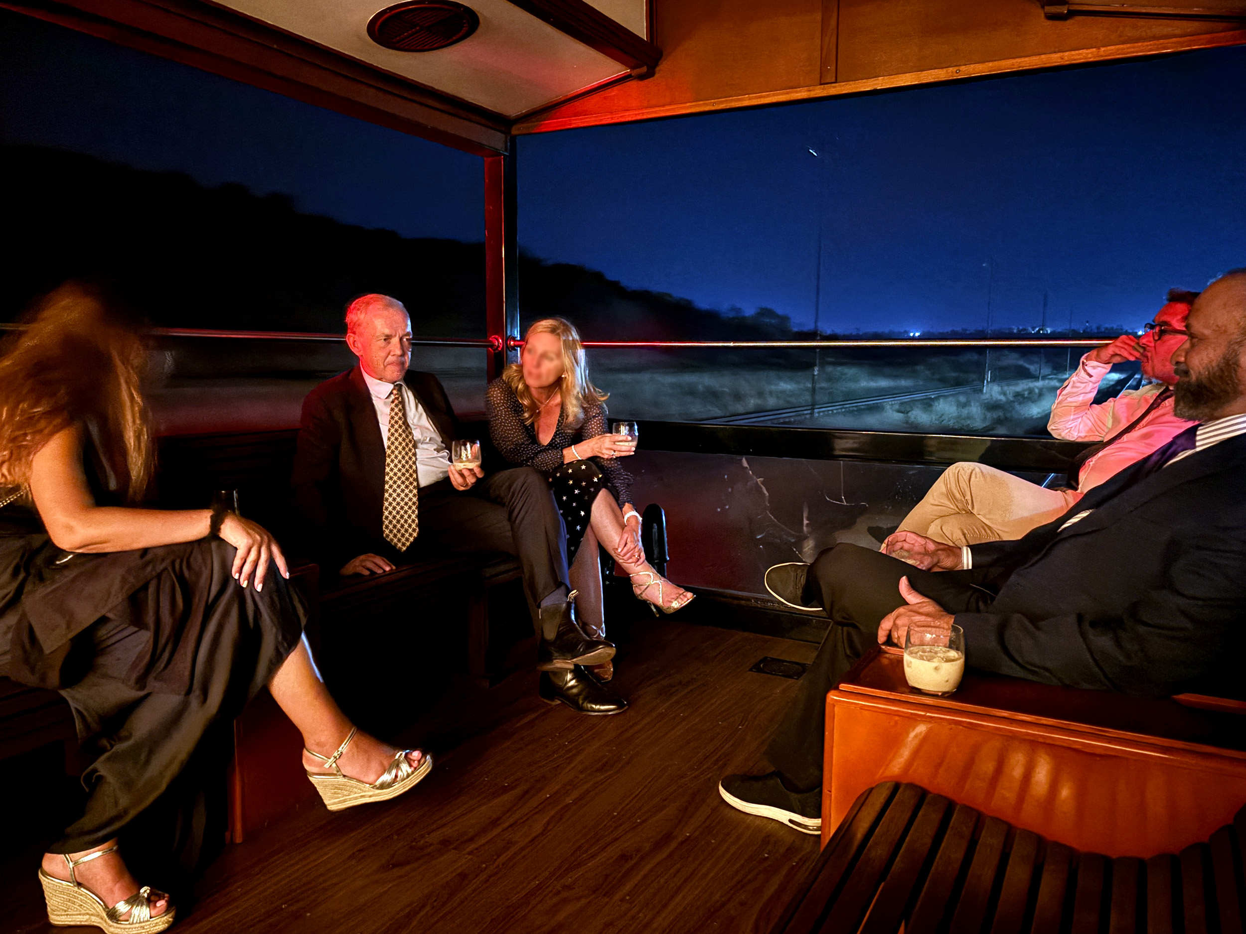 As if the continental breakfast and high tea weren’t enough, we were gently reminded that a proper lunch would be served as well. At every single meal onboard, we were pampered silly. Breakfasts were a choice between the egg preparation of the day or eggs prepared to one’s preference. Lunches and dinners were multi-course events; exceptional in taste, and always beautifully plated. A wine pairing accompanied each of those meals, and Cuan, our sommelier par excellence, ensured we were always sufficiently hydrated. Dinner was a dress-up affair, and Kosmotho, our carriage attendant, would come through with a gong 10-minutes prior to the only sitting each evening, announcing the same. The bar in the lounge car remained open till late, so a nightcap, or two, were always in order. As were star-gazing and conversations, all conducted in the naturally cooled environs of the observation car. We would stumble back to our suites to discover a stylish turn-down service, different on each night.