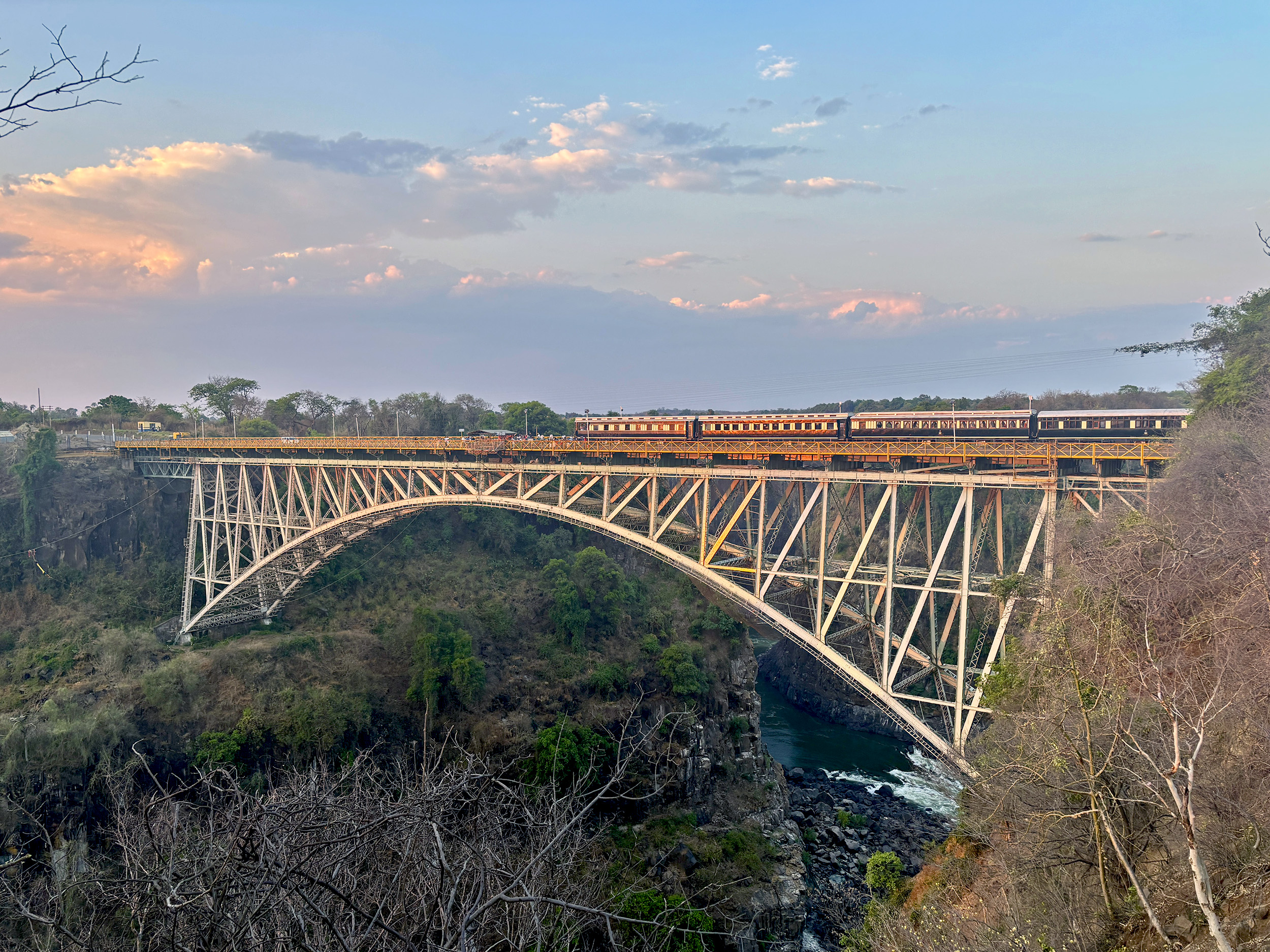Cecil Rhodes‘ plan of building the Cape to Cairo Railway was thwarted in the early 20th-century by a combination of geography, rival imperialist ambition, and pure economics. The British only got as far as Northern Rhodesia (present day Zambia) but along the way they built transportation icons that are still revered to this day. The magnificent steel arch bridge over the Zambezi River for one, and not far from it, a splendid hotel to accommodate passengers on their then newly-built Rhodesia Railway. Considered one of the most luxurious on the continent, the historic Victoria Falls Hotel occupies prime acreage on the Zimbabwean side, offering unhindered views of the aforementioned bridge, and the precipitous gorges of the Zambezi below. The sprawling luxury property, where mongooses frolic on the greens, and a bell is rung each evening for high tea, was also the starting point of our next journey, and an introduction to the world of Rovos Rail.