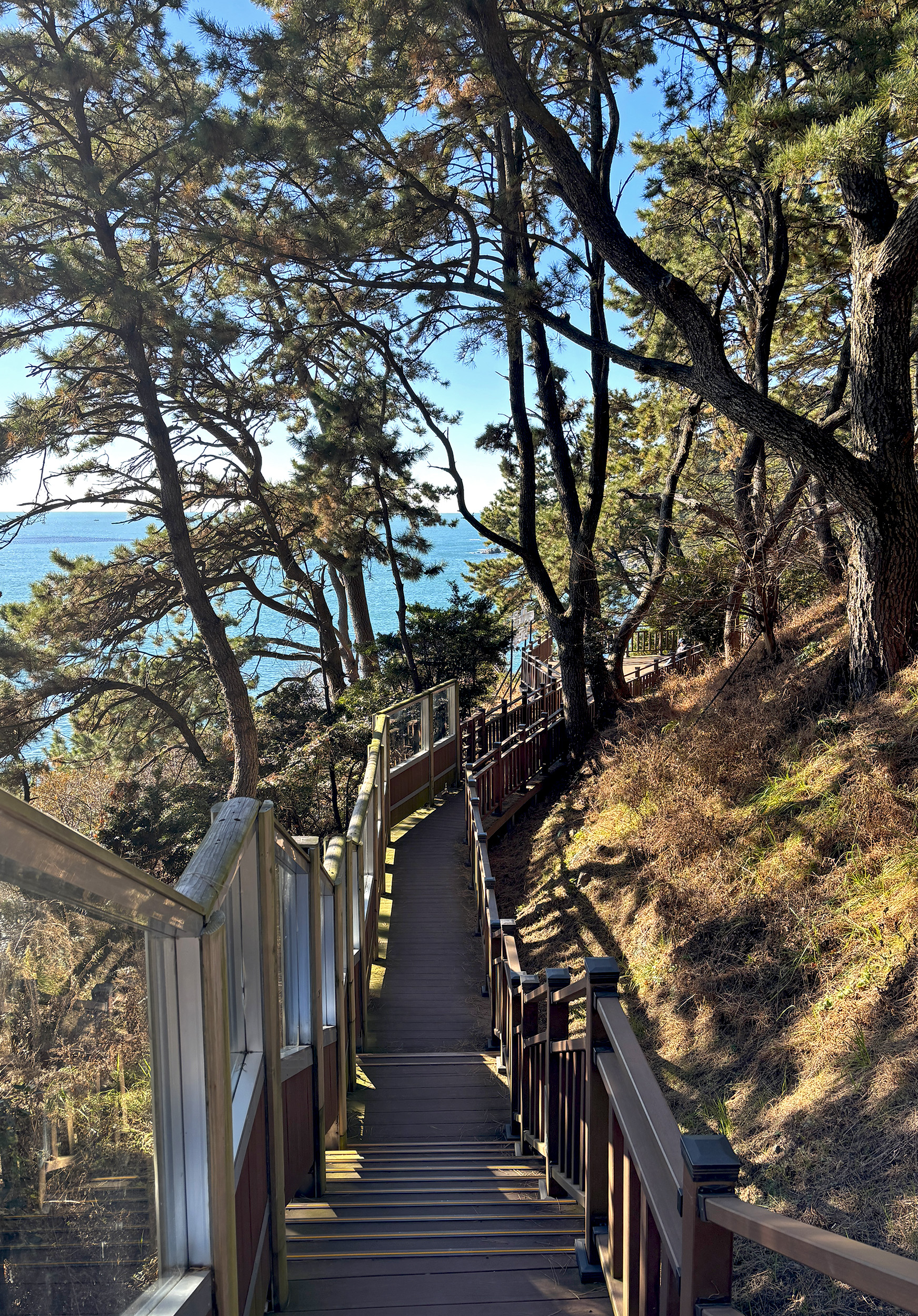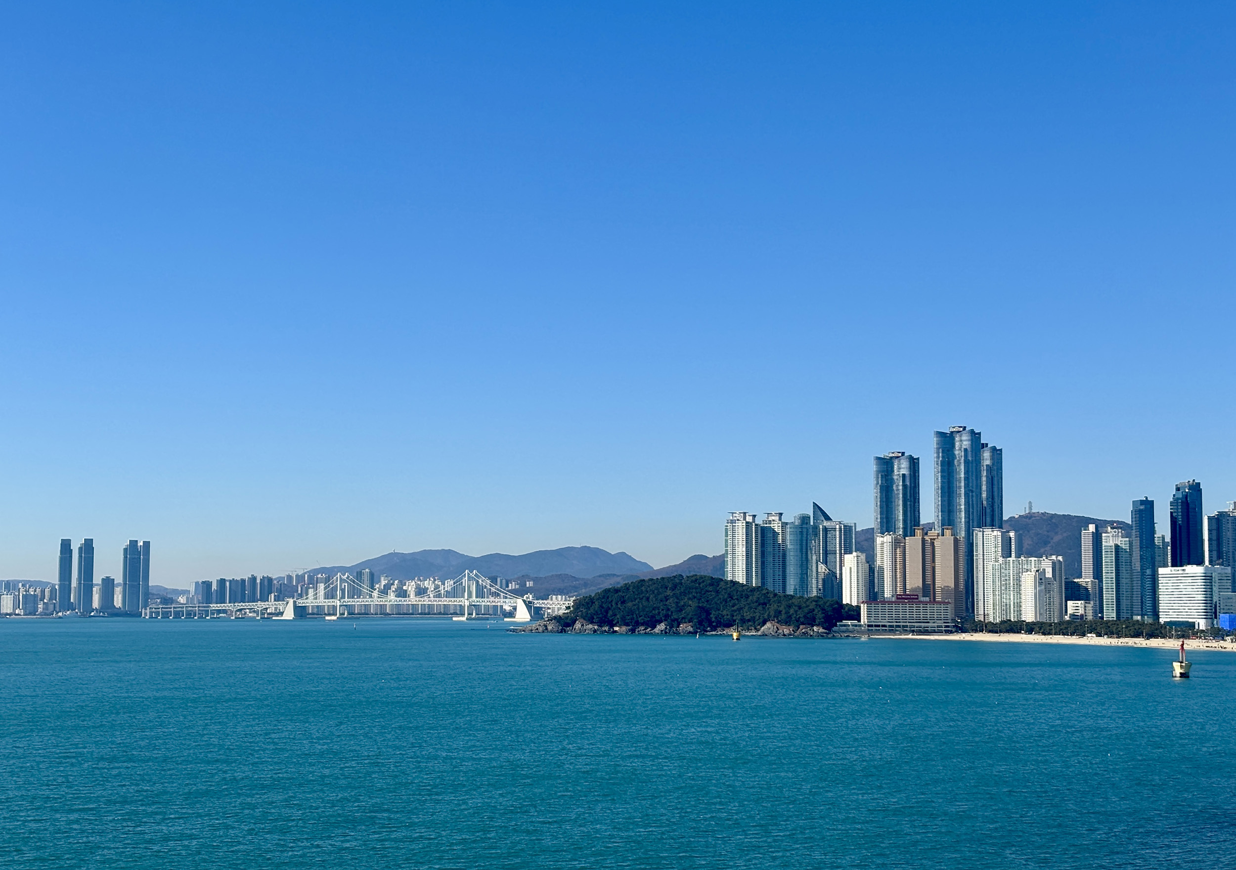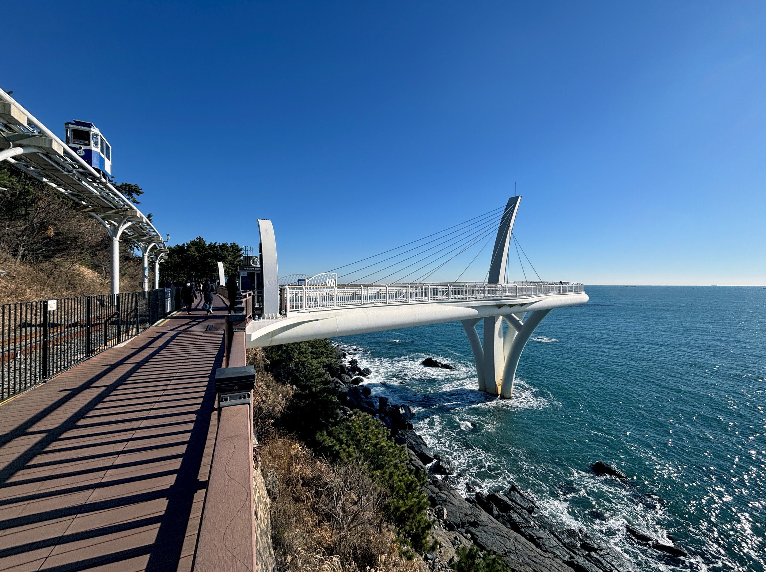 The country’s second largest city, and main port, also has a coastline worthy of envy. With a half dozen public beaches to its credit, Busan is often considered the “summer capital” of South Korea. Being there in the dead of winter though, I had to settle for something more practical. Known for its namesake beach, and having some of the tallest buildings in South Korea, the district of Haeundae is also home to a large waterfront park. Over 5 km (~3-miles) in length, Haeundae Blueline Park includes a “beach train“, an innovative “sky capsule” ride, a glass-bottom platform overhanging the ocean, and picture postcard coastal scenery throughout. On a particularly clear day, you could spot Tsushima Island in Japan from across the strait, and every other time, fabulous views of the beautiful urban setting that is Busan.