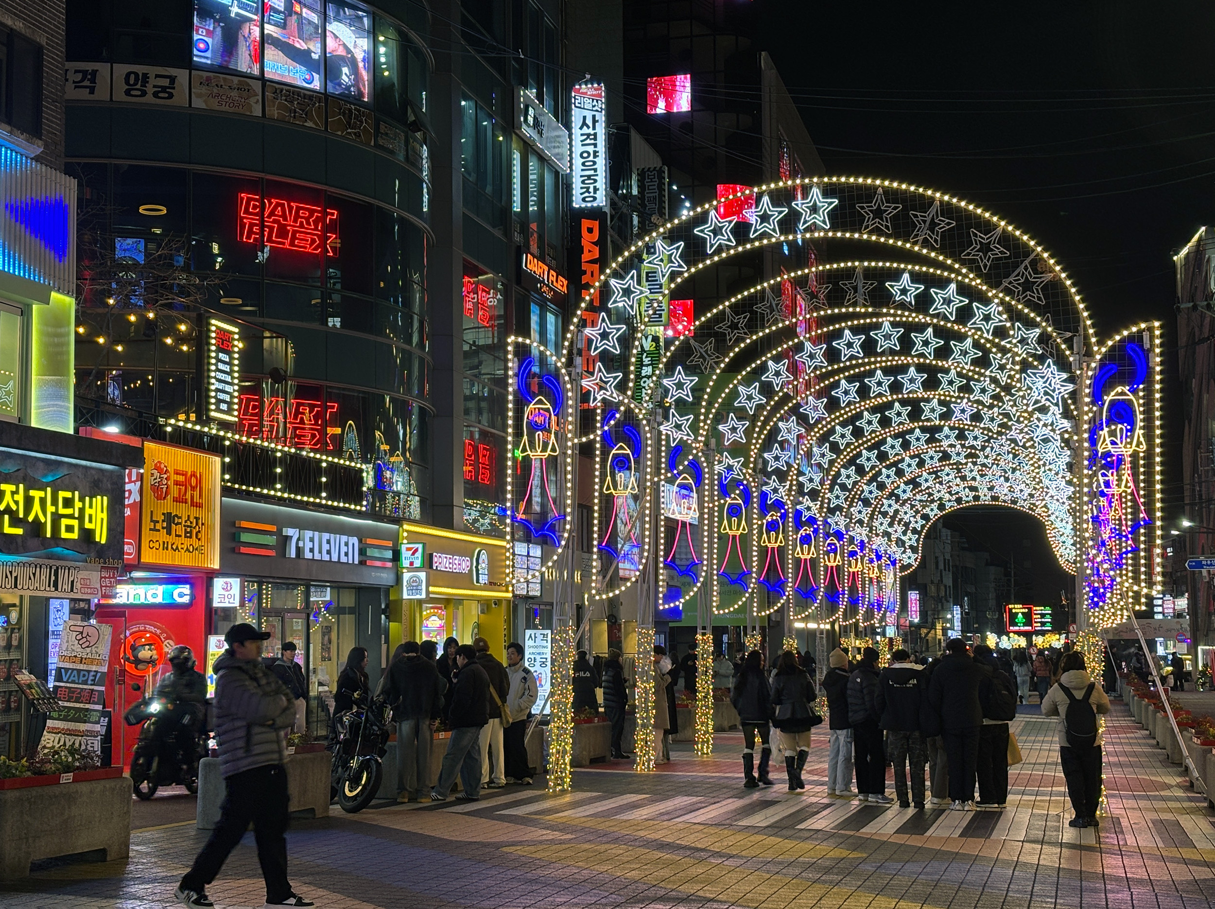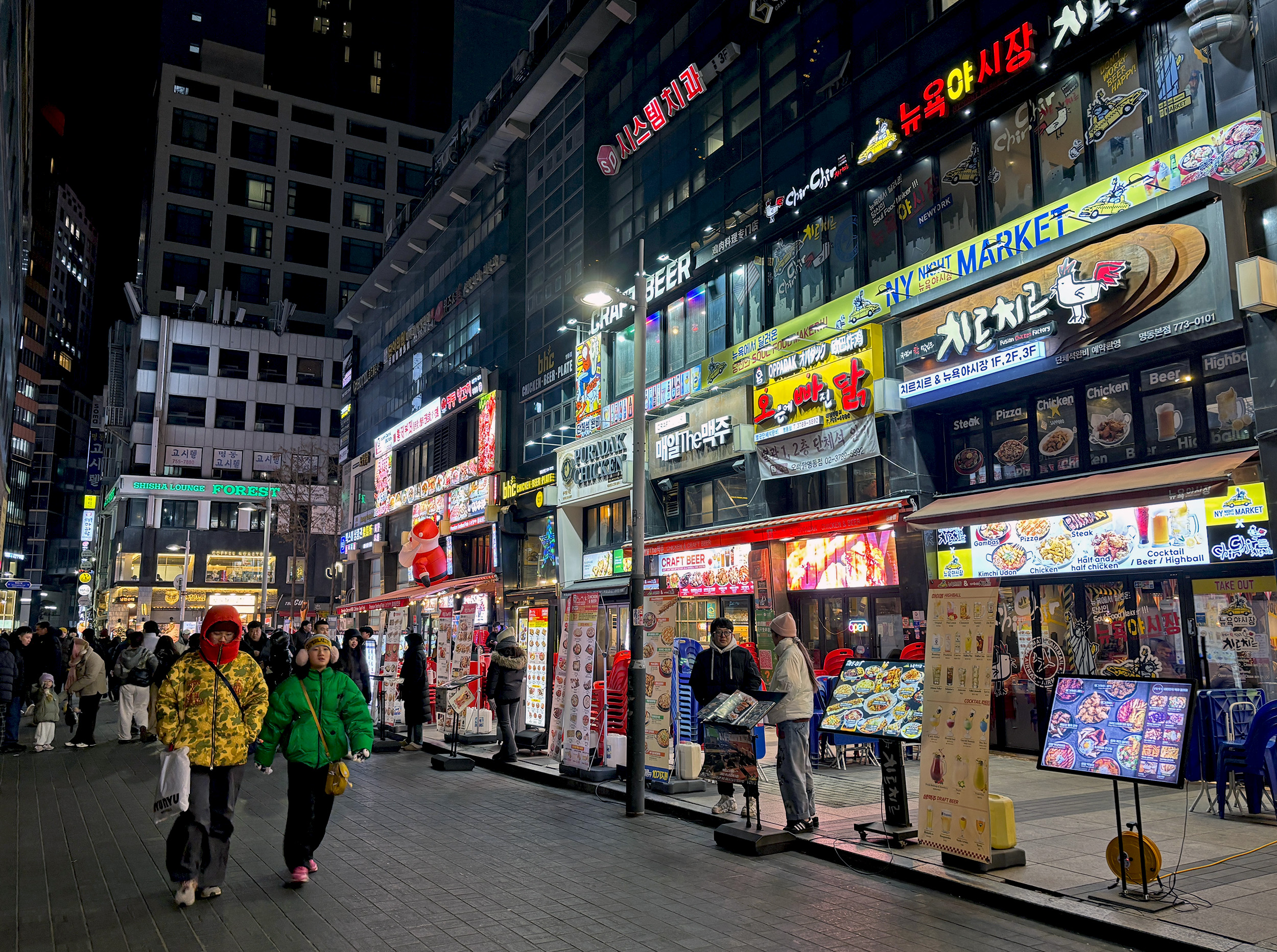 I was in the the Hongdae neighborhood of Seoul, a popular nightlife destination located close to Hongik University. It was well below freezing, and fairly late for a weeknight, but the streets of Hongdae were packed; its pedestrian thoroughfares bedecked in colorful festive lights, and buskers performing to sizable crowds. Caricature shops were brimful of eager customers, karaoke bars had lines out the door, and restaurants serving chimaek (chicken and beer) vied for attention. And then there was Gacha – plenty of it! Different neighborhood, different night – same story. It didn’t have to be a weekend, or the right kind of weather, for Seoulites to be out and about. I was hugely impressed.