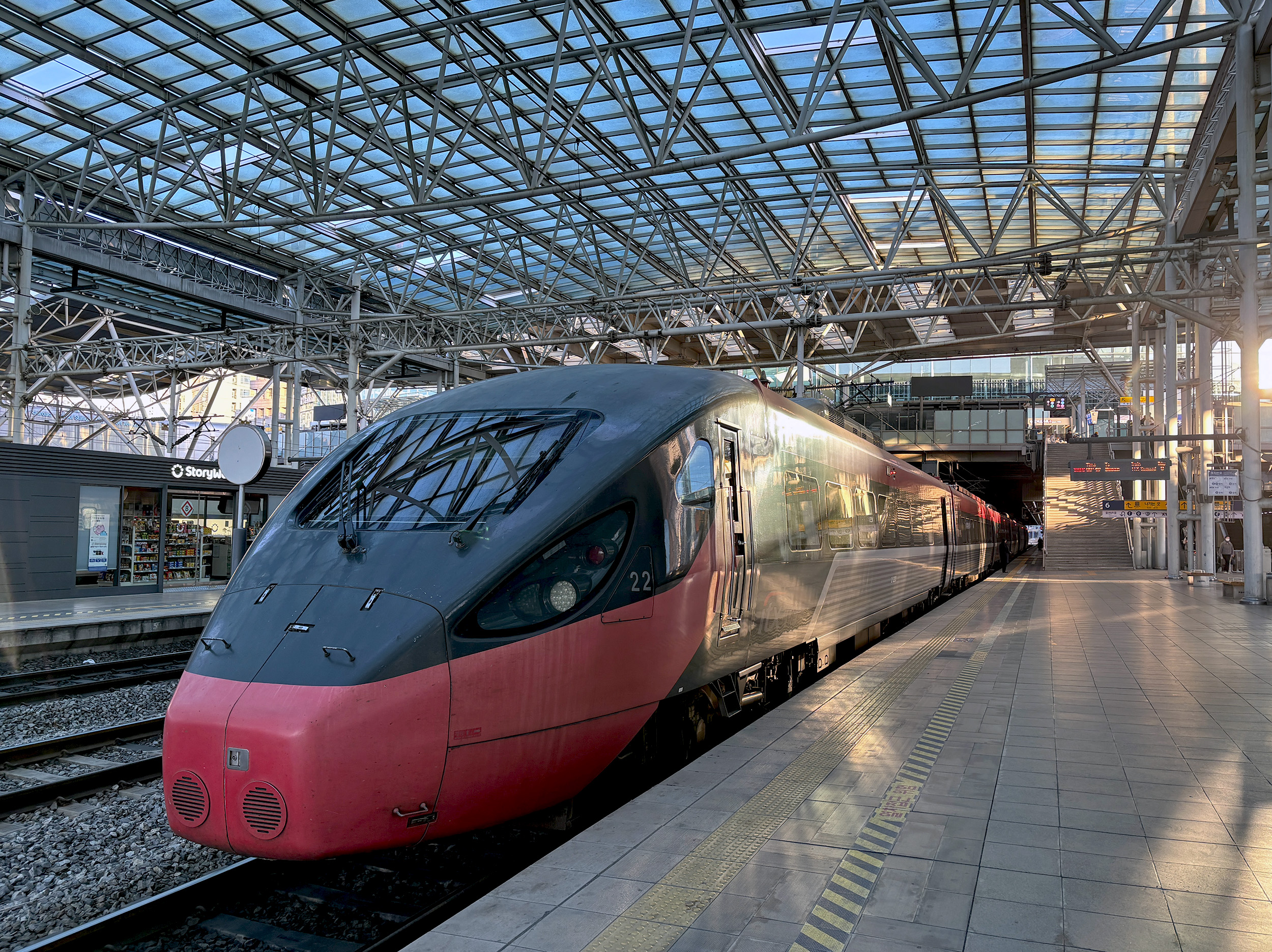 There is no one “Train to Busan”. There are in fact 98 departures each weekday, and several varieties of service amongst them. I took a relatively slow one on the outbound journey, and on the return leg to Seoul, the KTX high-speed train, the one that features in the much-hyped film. There was no cinematic twist on either of those journeys, and nothing remotely apocalyptic either. I suppose a four-minute late arrival into Seoul could count as dramatic? What I discovered though was just how mountainous the country is – over 75%. How built up it is – that should’ve come as no surprise. And how the South Korean rail system is as good as they come. Again, no surprise. Full disclosure: I’m yet to see the film.