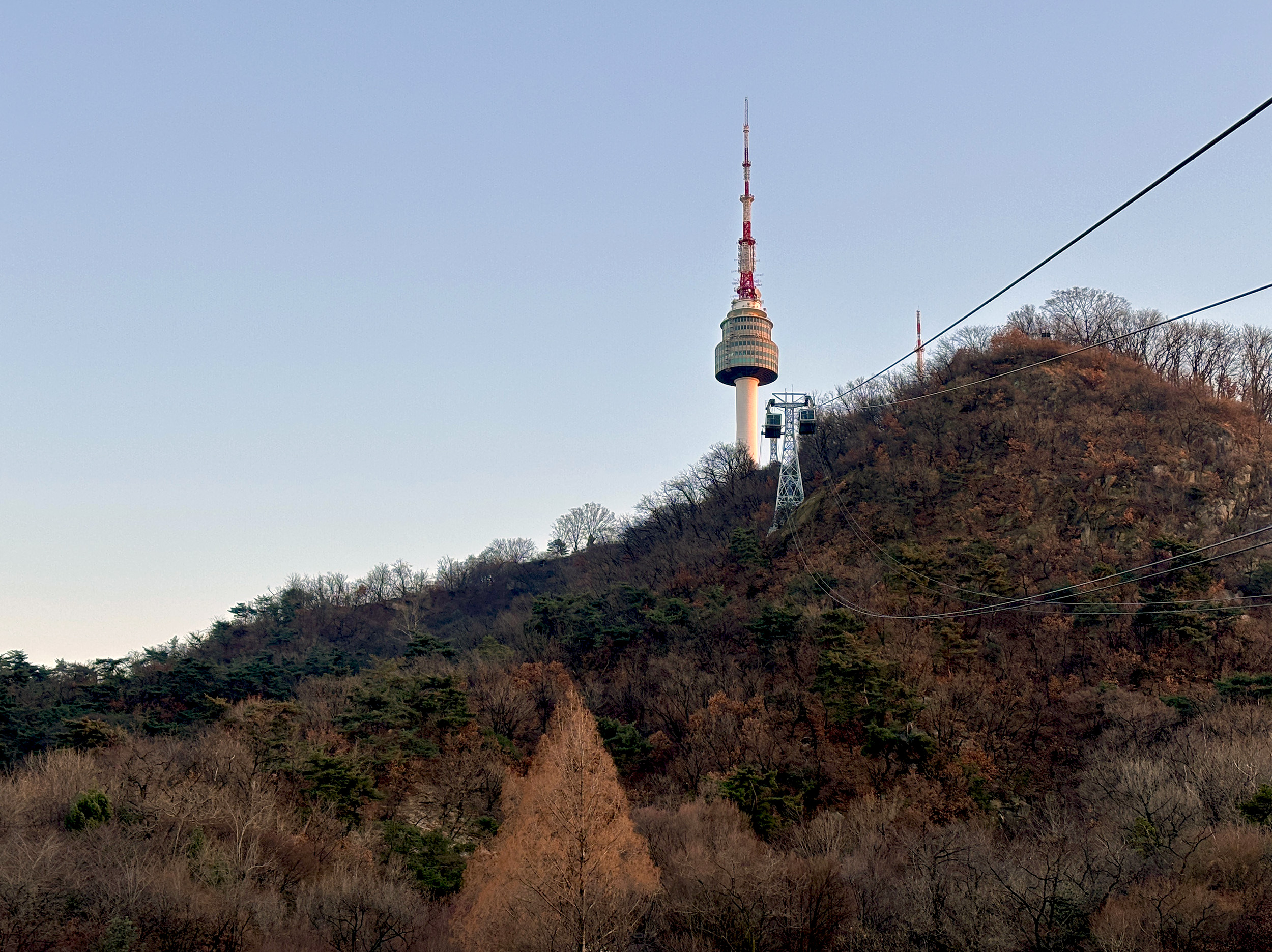 Seoul is settled around the Han River plain, the waterway splitting its northern and southern halves almost evenly. The city’s geography, while dissected by the Han, is also hemmed in by surrounding mountains. Even within Seoul’s 600 km2 footprint lie four peaks, two of them rising over a thousand feet in altitude. Not surprisingly, there is hardly any scarcity of vantages throughout the city, but while most of them require some physical effort to get up to, the summit of Namsan can easily be reached by cable car. Namsan is also the geographic center of Seoul, affording 360° vistas of the Korean capital, and capping its summit is the city’s iconic TV tower. Whether or not you shell out the extra wons to access it, the views from Namsan are guaranteed to delight.